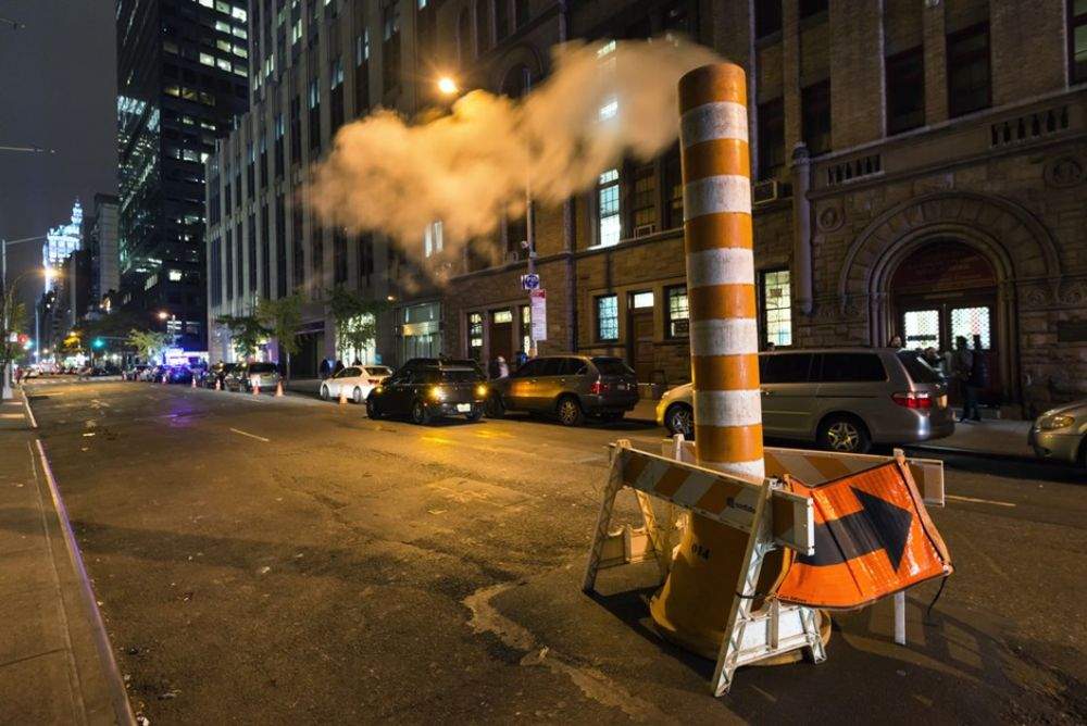 Vous verrez donc des vapeurs s’échapper des bouches d’égout quand tout est normal, ou des cheminées orange quand les employés de ConEd y font des réparations. L’entreprise installe les cheminées en les plaçant pour contenir les vapeurs et les diriger vers le haut, au-dessus du niveau visuel de la circulation automobile.